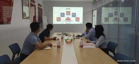 在吳總的引導(dǎo)和講解下,于主任和劉部長兩人參觀了公司環(huán)境、文化氛圍、黨務(wù)工作情況,雙方在山東紅海會議室舉行座談交流會。