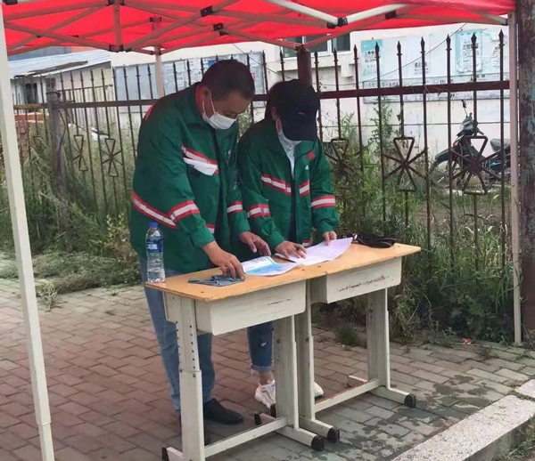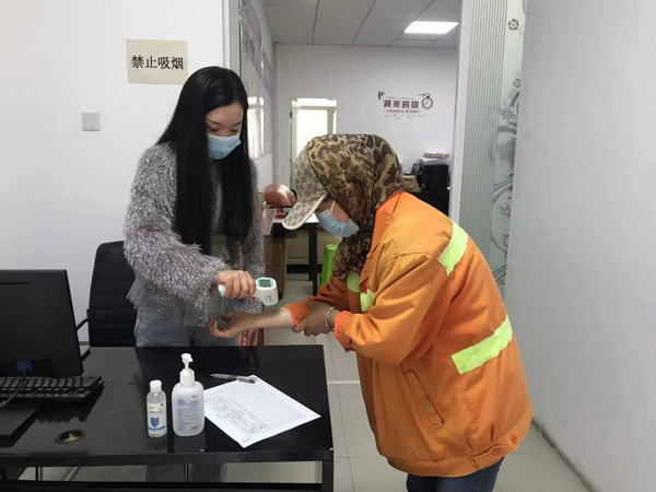 嚴格做到外來人員登記,定時定點測量體溫,檢查口罩防護用品是否佩戴正確。