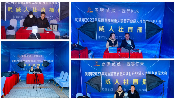 此次交流大會還邀請到了省人社廳直播帶崗巡回組開展現(xiàn)場直播活動,同時市內(nèi)人力資源機構(gòu)代表甘肅紅海人力資源有限公司武威分公司代表武威市人力資源和社會保障局同步進行直播帶崗活動。市人社局副局長趙磊同志做客紅海直播間并對本次招聘會相關(guān)政策進行解讀,同時邀請到多家企業(yè)代表做客直播間通過線上直播的方式為求職者答疑解惑。