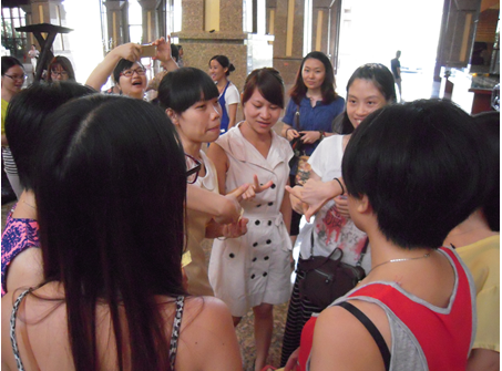 首先,我們抽簽分組來了個(gè)熱身賽——“心有靈犀紅海通”?;顒?dòng)是采用三盤兩勝制,隊(duì)員們用身體語言傳達(dá)一組數(shù)字。在王經(jīng)理簡單介紹活動(dòng)規(guī)則后,小組隊(duì)員馬上展開了討論,從符號到大小寫,再到比劃的方式,隊(duì)員們都考慮得非常仔細(xì),團(tuán)隊(duì)的榮譽(yù)感、默契和激情都得到了充分的展示。大戰(zhàn)數(shù)回合下來,輸贏與否已不重要,“心有靈犀紅海通”成為了同志們的第一個(gè)大收獲。